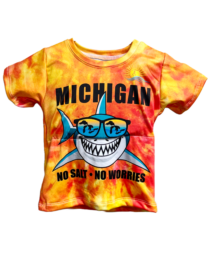 Swim into paradise with the this new water shirt! This vibrant shirt features a wonderful ode to the lakes we love and know. The proprietary foam insert provides added buoyancy and protection, making it the perfect choice for parents seeking peace of mind while their children have fun in the water. The shirt is made from a quick-drying, lightweight material that is both comfortable and durable. The snug fit prevents slipping or riding up, ensuring your child stays safe and secure while they play. Let your child explore paradise with the NO SALT, NO WORRIES water shirt!